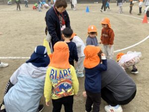 途中で転んでしまうお友だちも、みんなの声援をうけて諦めずに最後まで走りぬくことができました。